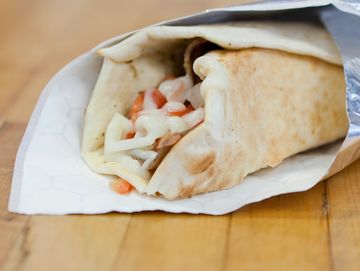 The full East Cost experience. Crafted with delicious strips of Donair meat made with beef and infused with the perfect spices, diced tomatoes, diced onions, and layered with our signature in-house sweet and garlicy Donair sauce, all enclosed in our fresh baked, made to order, hand made wrap. Mediterranean meets Canada in this amazing dish!
